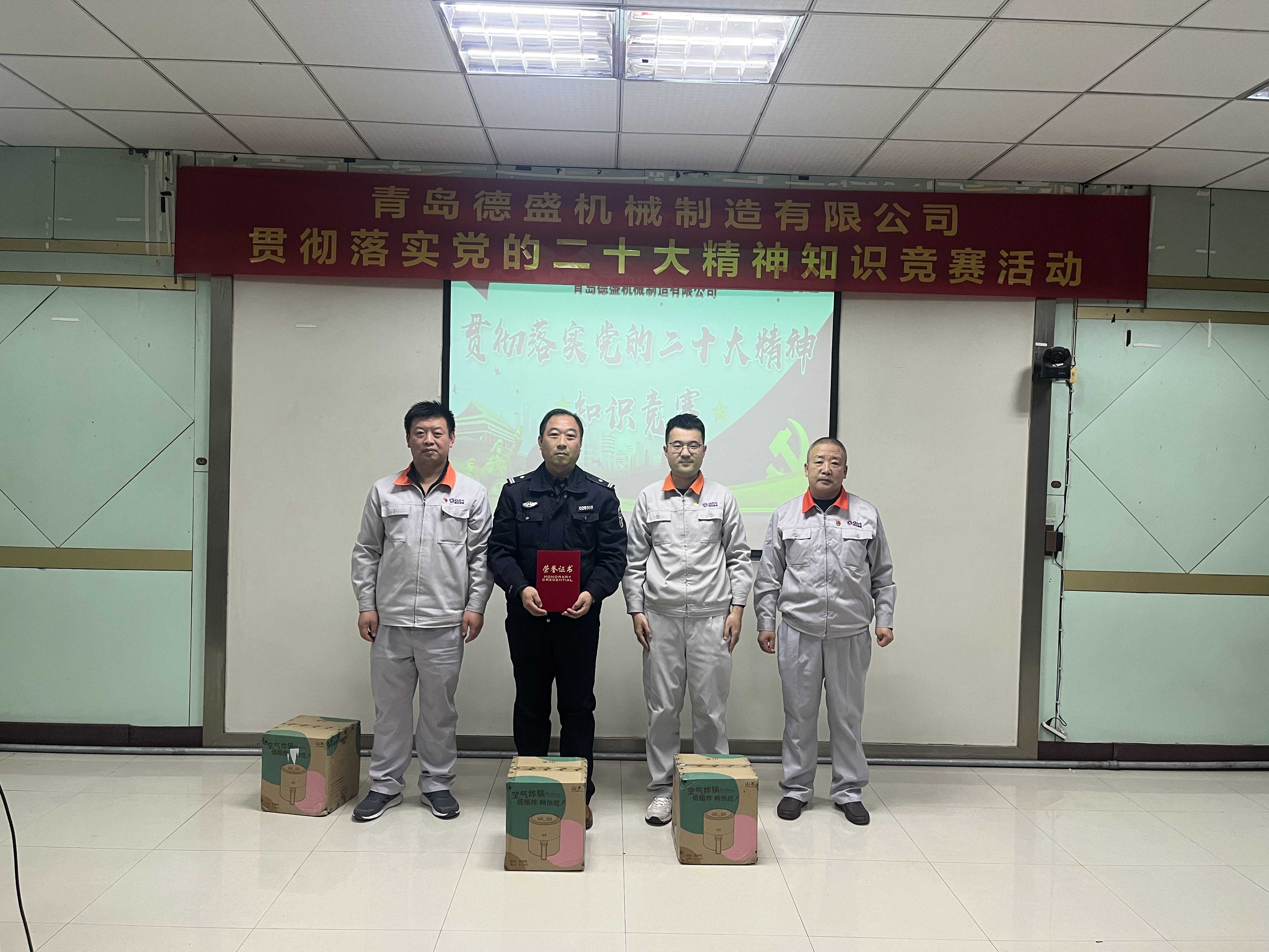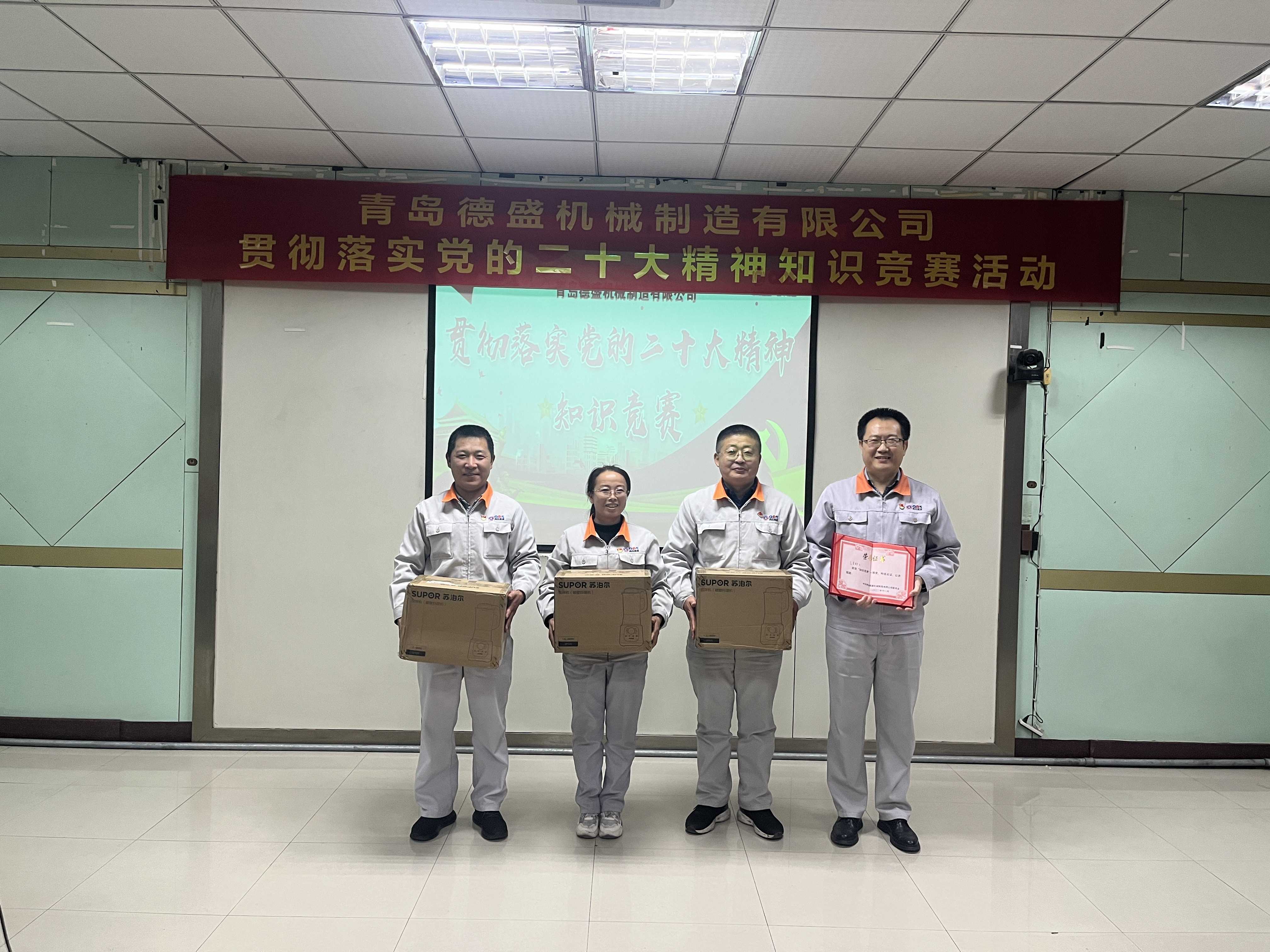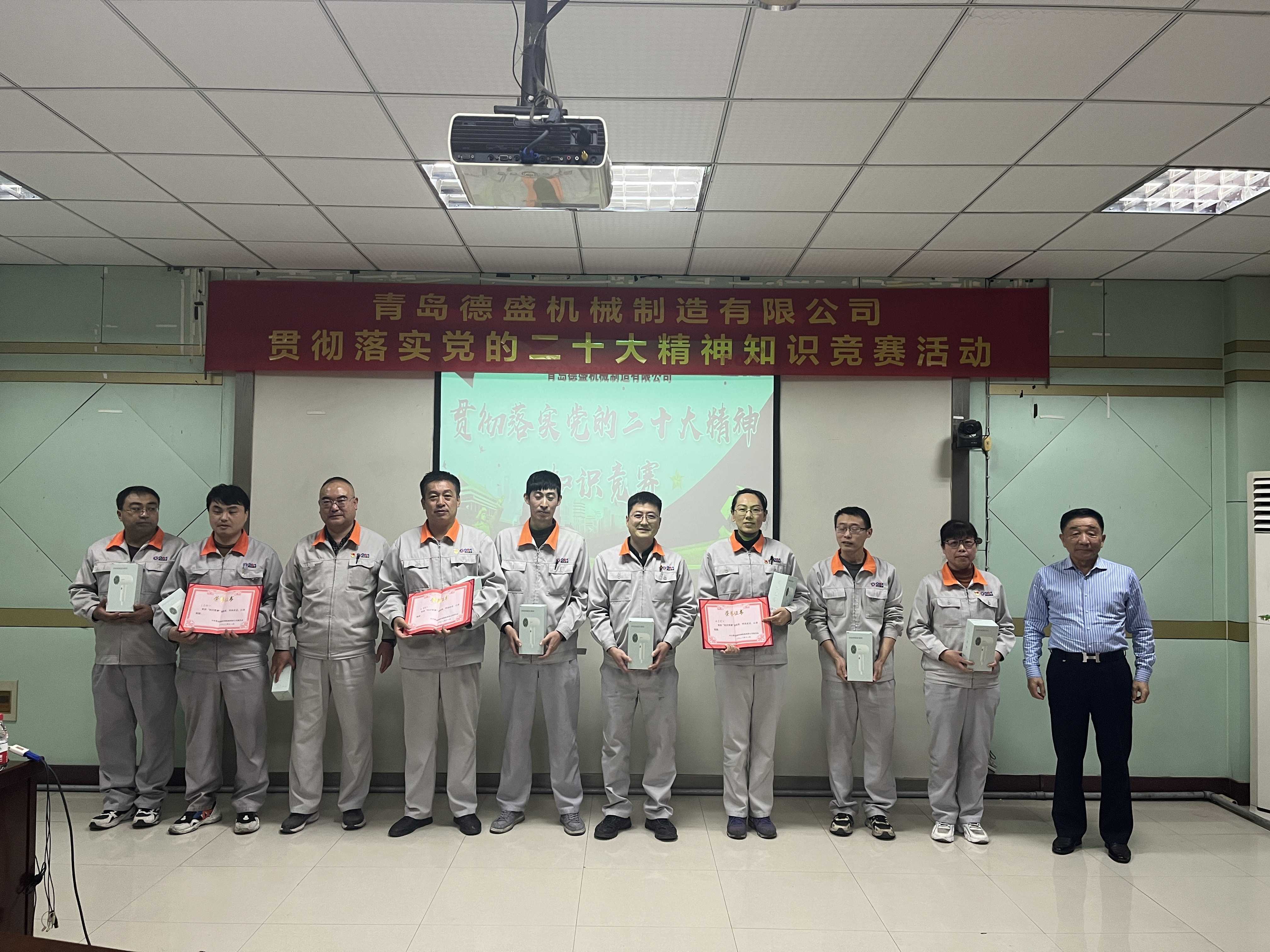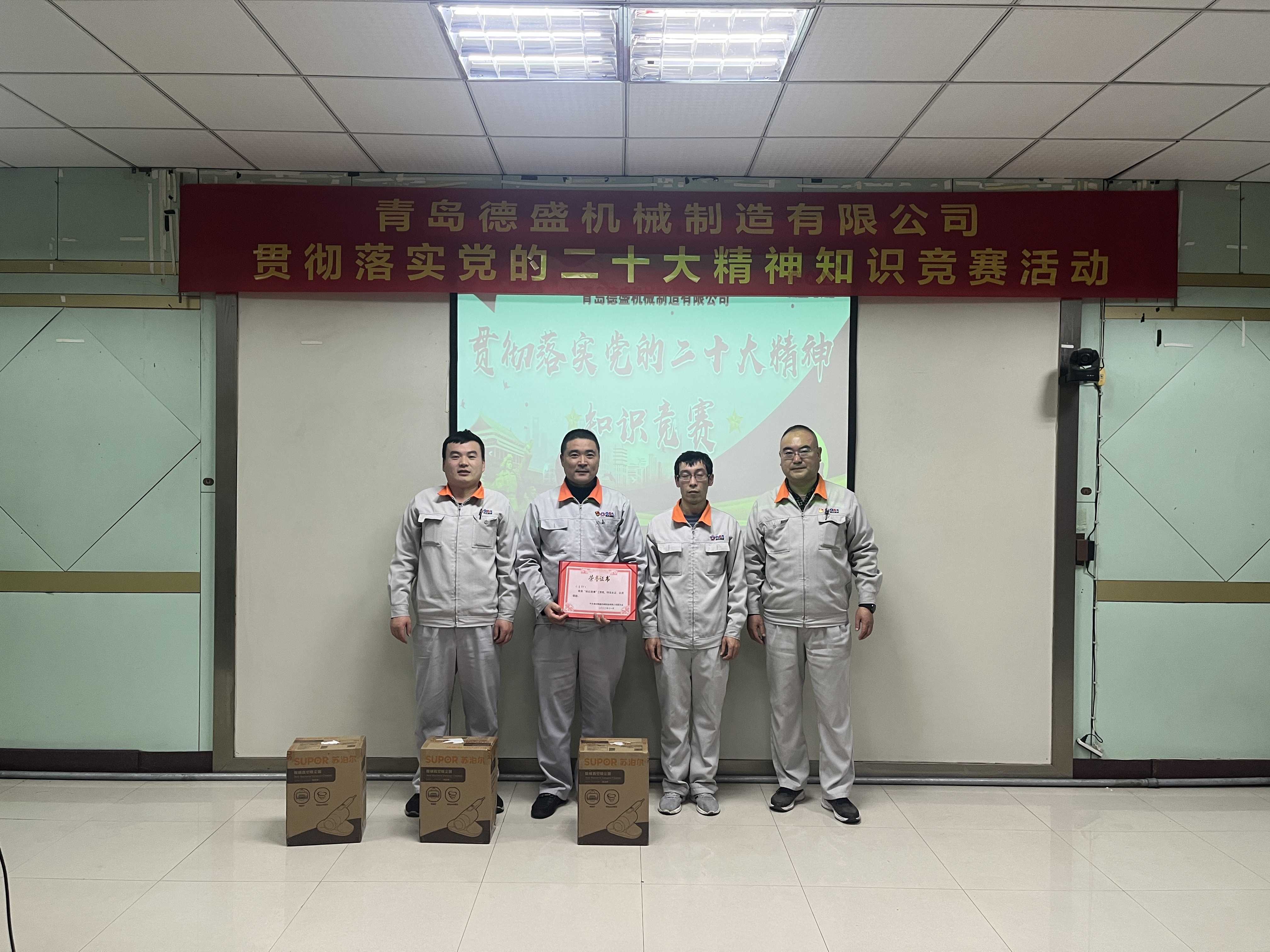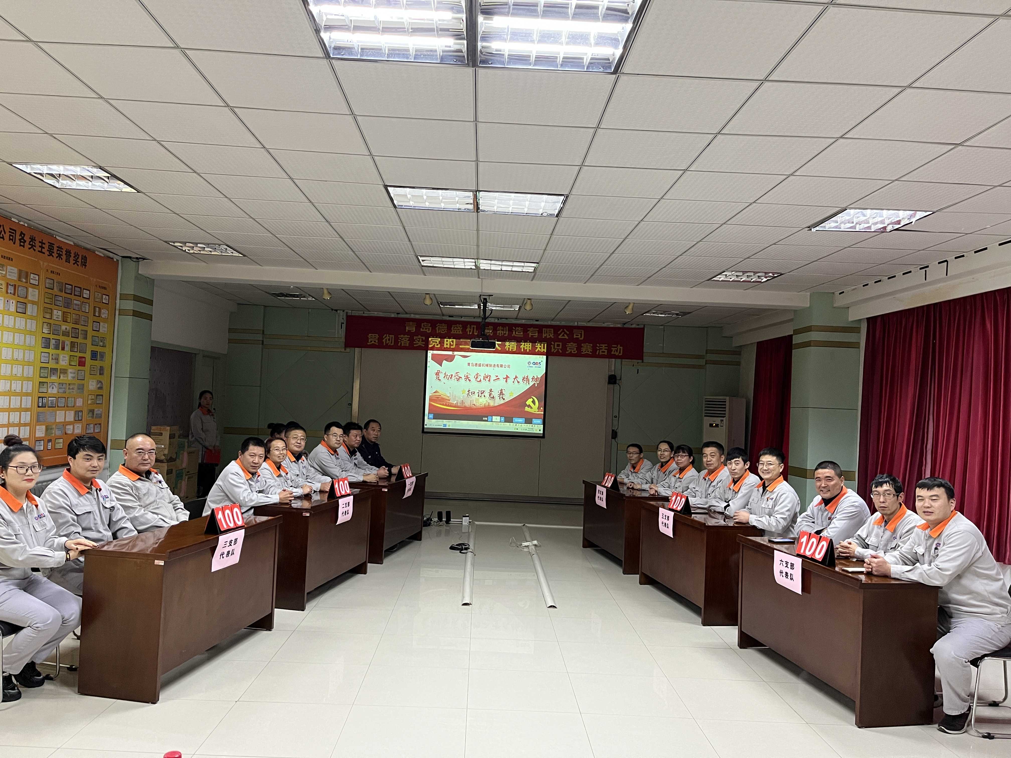 為熱烈慶祝黨的二十大勝利召開,深入貫徹落實(shí)黨的二十大精神,進(jìn)一步推進(jìn)公司黨員的思想、組織、作風(fēng)建設(shè),不斷提高理論學(xué)習(xí)水平,踔厲奮發(fā)、勇毅前行。11月18日下午,中共青島德盛機(jī)械制造有限公司黨委組織開展了“貫徹落實(shí)黨的二十大精神”知識競賽活動。公司董事長孫佩璋,黨委書記、營銷和經(jīng)濟(jì)運(yùn)行總監(jiān)羅賽,黨委副書記、黨政管理總監(jiān)李建平,黨委委員、董事長辦公室主任、黨政辦公室主任李超,黨委委員、總經(jīng)理助理、生產(chǎn)管理部經(jīng)理張錫軍,黨委委員、總經(jīng)理助理、技術(shù)研發(fā)中心主任王濤遠(yuǎn)出席本次活動。