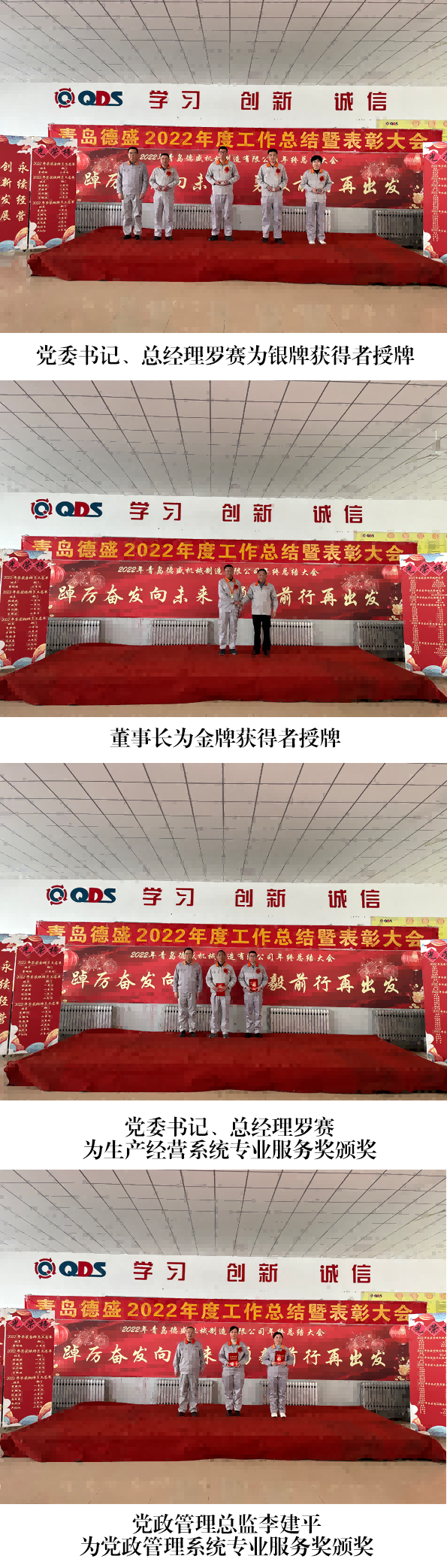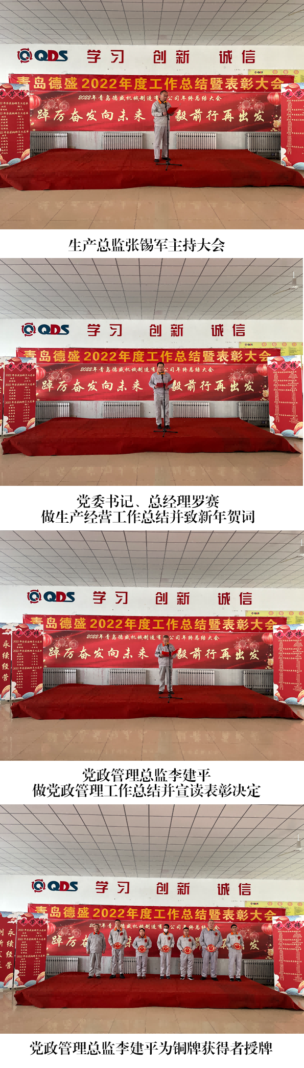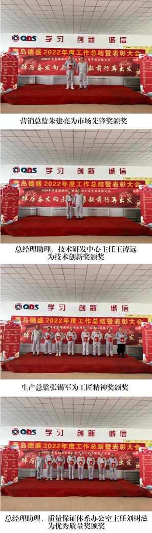 大會(huì)舉行了隆重的頒獎(jiǎng)儀式,為劉書亮等4 名員工頒發(fā)“專業(yè)服 務(wù)獎(jiǎng)”;為王杰頒發(fā)“市場先鋒獎(jiǎng)”;為李文頒發(fā)“技術(shù)創(chuàng)新獎(jiǎng)”;為 王佳麗等7 名員工頒發(fā)“工匠精神獎(jiǎng)”;為任立剛等 7 名員工頒發(fā)“優(yōu) 秀質(zhì)量獎(jiǎng)”;為劉海寧等4 名員工頒發(fā)“管理卓越獎(jiǎng)”;為入職工作滿 10 年的李新作等6 名員工頒發(fā)銅牌;為入職工作滿 20 年的任興鵬等 4 名員工頒發(fā)銀牌;為入職工作滿30 年的曹明睿頒發(fā)金牌。榮獲獎(jiǎng) 牌代表任興鵬、優(yōu)秀員工代表劉海寧分別發(fā)言,他們感謝公司的培養(yǎng)、 領(lǐng)導(dǎo)的信任和同事們的支持,并表示2023 年一定立足本職崗位,將 董事長提出的“調(diào)結(jié)構(gòu)、促重點(diǎn)、穩(wěn)投入、占高端、聚焦發(fā)展”的工 作總基調(diào)與本職工作相結(jié)合,不斷創(chuàng)新工作思路,努力提高工作能力 和工作水平,力求將各項(xiàng)工作做得更加扎實(shí)、更加到位,為公司的發(fā) 展做出新的貢獻(xiàn)!
